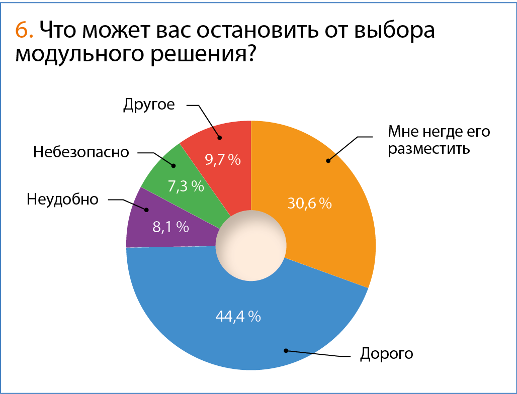 Что же мешает заказчикам перейти к использованию подобных решений? Как показал опрос, есть два основных критерия: цена (44,4 %) и отсутствие места (30,6 %). Остальные причины не столь значимы.