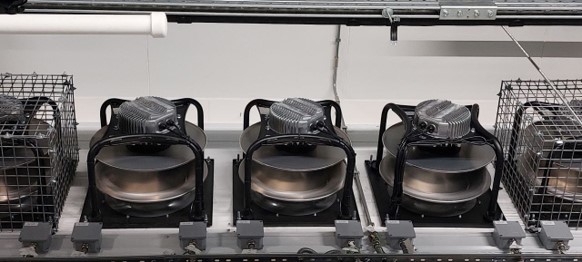 Схема кондиционирования с применением ВОК была реализована и испытана в различных режимах работы в действующих машинных залах ЦОД IXcellerate MOS5 с общей проектной IT-нагрузкой более 30 МВт. В типовой конфигурации одна ВОК включает 12–18 теплообменных аппаратов холодопроизводительностью до 220 кВт каждый и 70–90 вентиляторов с расходом воздуха до 8 000 м³/ч каждый.