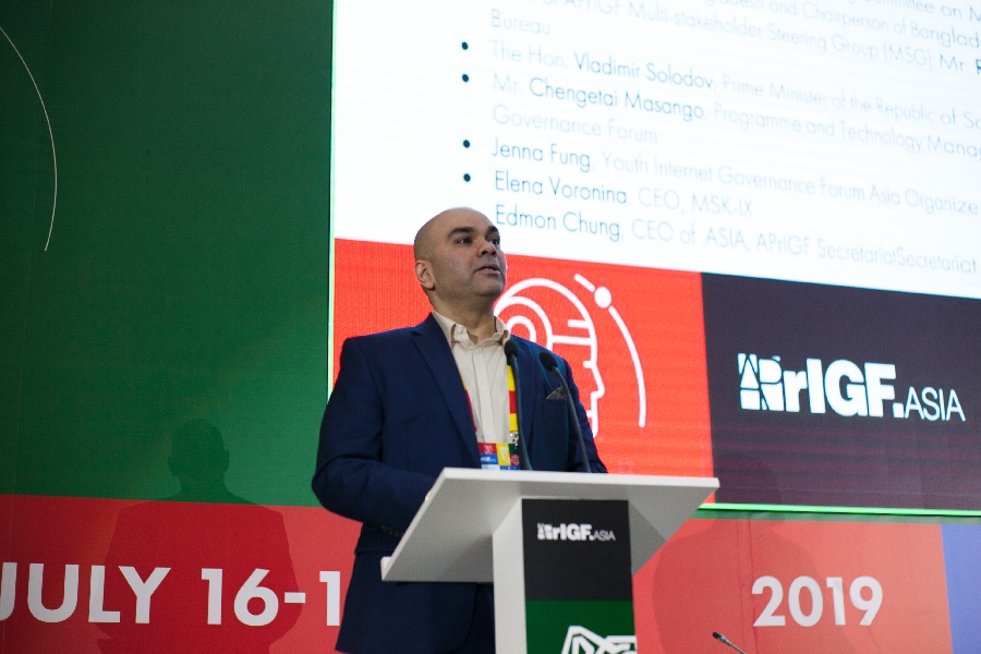 Продолжил церемонию открытия APrIGF 2019 вице-губернатор Приморского края по информатизации и социальной сфере Сергей Максимчук, который рассказал о применении цифровых технологий в сфере государственного управления края, и председатель Правительства Республики Саха (Якутия) Владимир Солодов. Он рассказал о том, как проходит цифровизация и интернетизация в Якутии, входящей в состав ДФО.